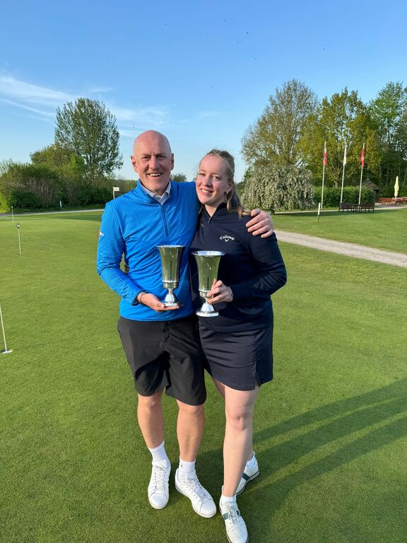 Die begehrten Brutto Damen und Brutto Herren Eiskeller-Pokale konnten sich Emily Schodrok und Stefan Schodrok sichern.